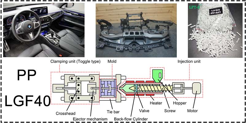 As the main part of the instrument panel system, the instrument panel frame is also the load-bearing structure of electrical components and other functional parts. Therefore, it is required to have high strength and high rigidity. At present, the most widely used material on the instrument panel frame is PP with the same density. The PP-LGF material replaces the traditional PP material. While meeting the relevant performance, it can improve the energy absorption performance of the instrument panel. At the same time, the design thickness of the existing instrument panel frame can be reduced from 3mm~3.5mm to 1.8mm~2.5mm, thus Reduce the weight of the instrument panel frame and promote the lightweight of car interiors.
