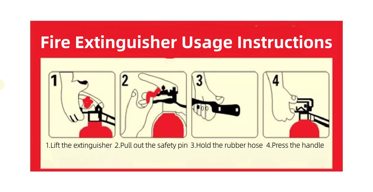 Aim at the base of the flames, sweep horizontally, and approach slowly from far to near. Do not release the handle until the fire is fully extinguished.