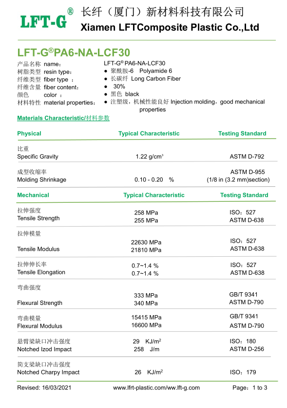 Xiamen LFT composite plastic Co., Ltd. is a brand-name company that focuses on LFT&LFRT. Long Glass Fiber Series (LGF) & Long Carbon Fiber Series (LCF). The company's thermoplastic LFT can be used for LFT-G injection molding and extrusion, and can also be used for LFT-D molding. It can be produced according to customer requirements: 5~25mm length. The company's long-fiber continuous infiltration reinforced thermoplastics have passed ISO9001&16949 system certification, and the products have obtained lots of national trademarks and patents.